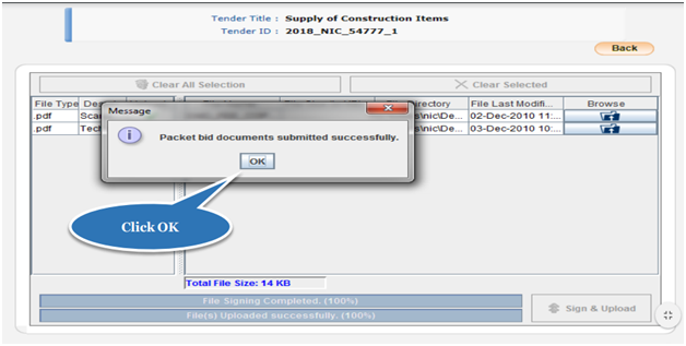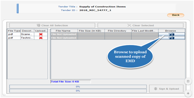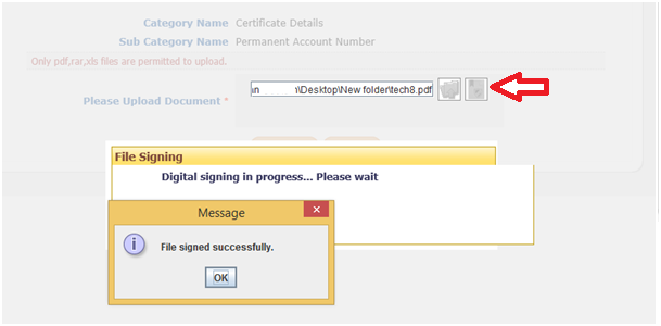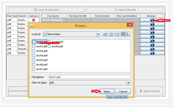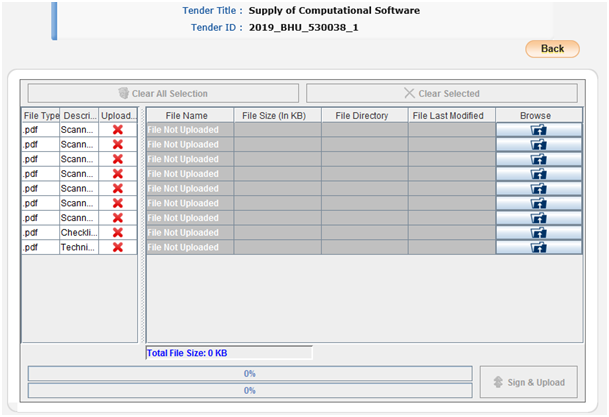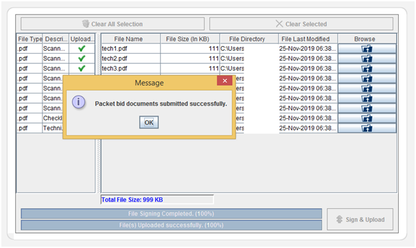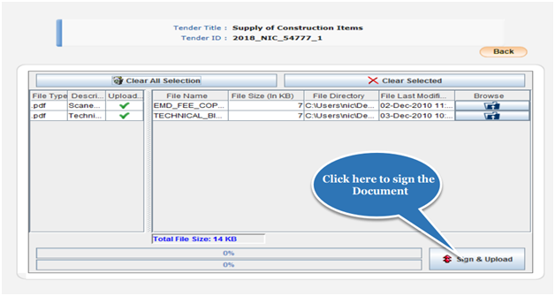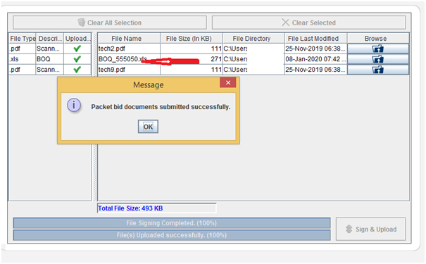 Make a note that all required files should be selected one by one then only Sign and Upload button will be highlighted. The whole files are to be uploaded as a single packet partial documents cannot be uploaded.