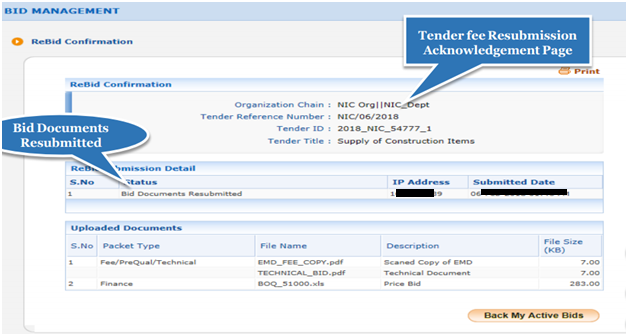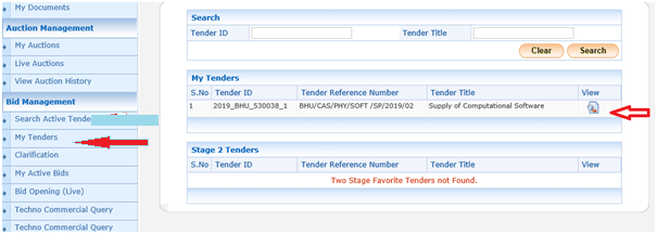 As soon as a Bid is frozen/submitted on eprocure portal, the tender disappears from you’re My Tender section and starts appearing under My Active Bid Option.