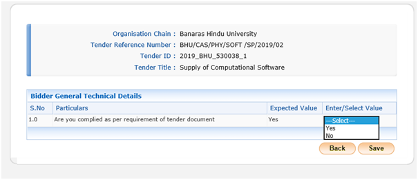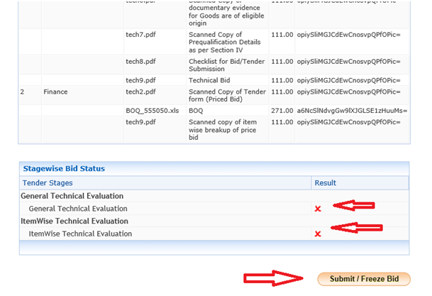 In Most of the Tender No adtiion details are required then you can Cilck on Freeze/ Submit Bid but there are some tenders where General Technical Evaluation or Item Wise Techncial Evaluation both of them are allowed by the dept hence tender cannot be submitted until it is complied.