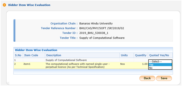Now Select Yes or No option of fill value as per the given field in next page. If there are more than one items the select Yes / No for all items respectively then click on Save then Next.