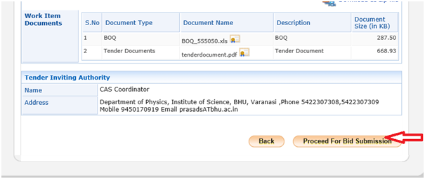 Scroll down to the bottom of the page and click on Proceed for bid submission.