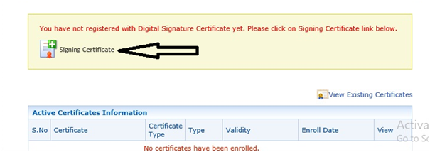 Login to the portal with the id and password you have created and click on Signing Certificate link.