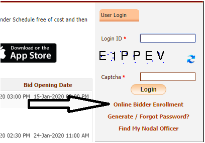 To register on the portal click on Online Bidder Enrolment link given on the home page and fill the required details appears on the next page then click on submit.