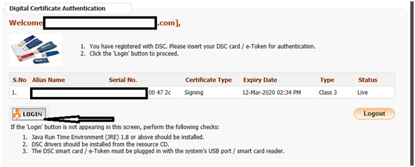 Once registration process is completed, the dsc mapping is mandatory to access the portal.