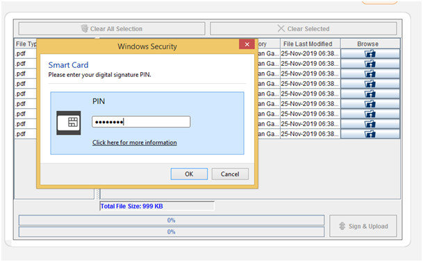 Once Selected all required files click on Sign And Upload button then enter DSC pin.