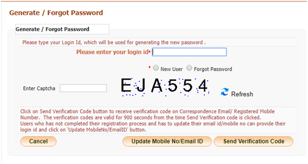 The mobile number or email address can also be updated through this option but it is only allowed for the New User who have not Generated the password ever. Once password is generated for your id then mobile / email can not be updated through this option.