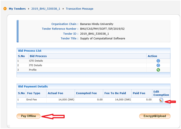 3: Payment mode is offline: In case of payment mode is offline for the tender then upload your exemption certificate in respective field if your certificate comes under Eligibility criteria mentioned in the tender document.