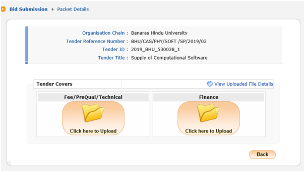 Now Portal show the full details of your tender which includes your payment details, the Technical and financial cover files details and other details if any addition information is required by the dept.